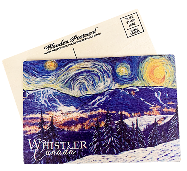 Our retro and classically designed Wooden Whistler Postcards are made with responsibly sustained birch and are available in a wide variety of styles depicting beautiful Whistler icons and scenes!